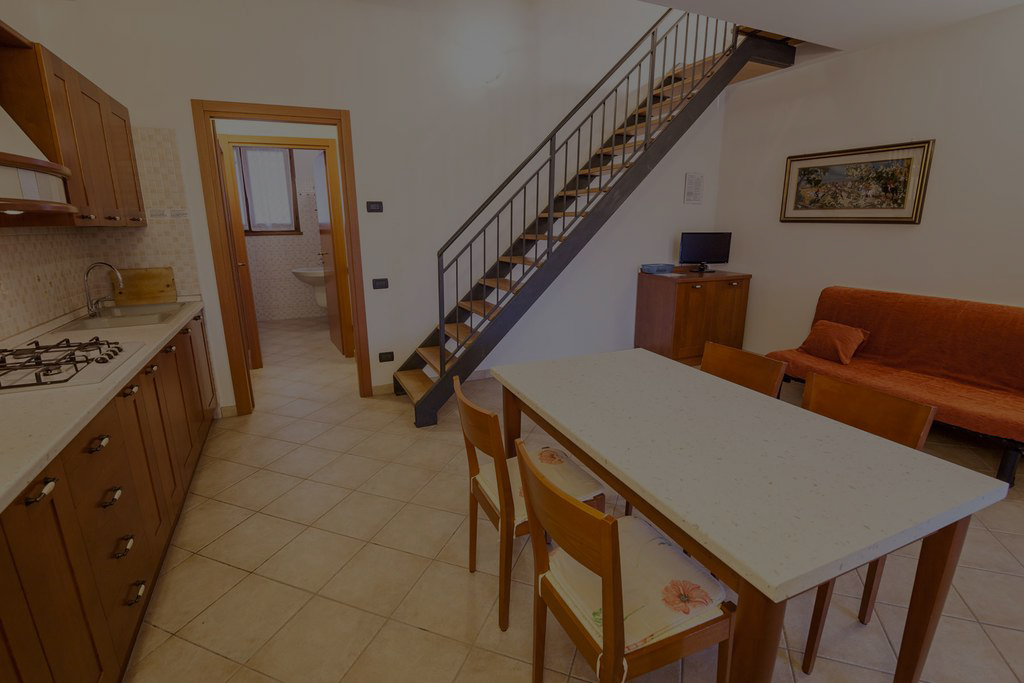 Während man vom Wohnzimmer aus über eine Treppe in das andere Schlafzimmer, das mit zwei Einzelbetten und einem Doppelbett ausgestattet ist, gelangen kann.